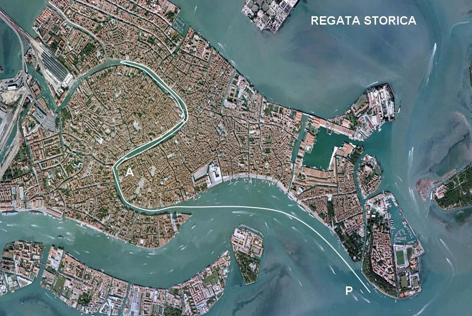 Le départ de la course est donné près de l'arsenal, les concurrents remontent ensuite le bassin de Saint Marc, passent devant le palais des doges, puis remontent le grand canal presque en entier. Un peu avant d'arriver à la gare Santa Lucia ils rencontrent un poteau placé au milieu du canal : ils en font le tour et repartent en sens inverse, c'est le "giro del paleto" puis redescendent le grand canal pour passer la ligne d'arrivée peu après le pont du rialto, au niveau du palais ca' foscari.